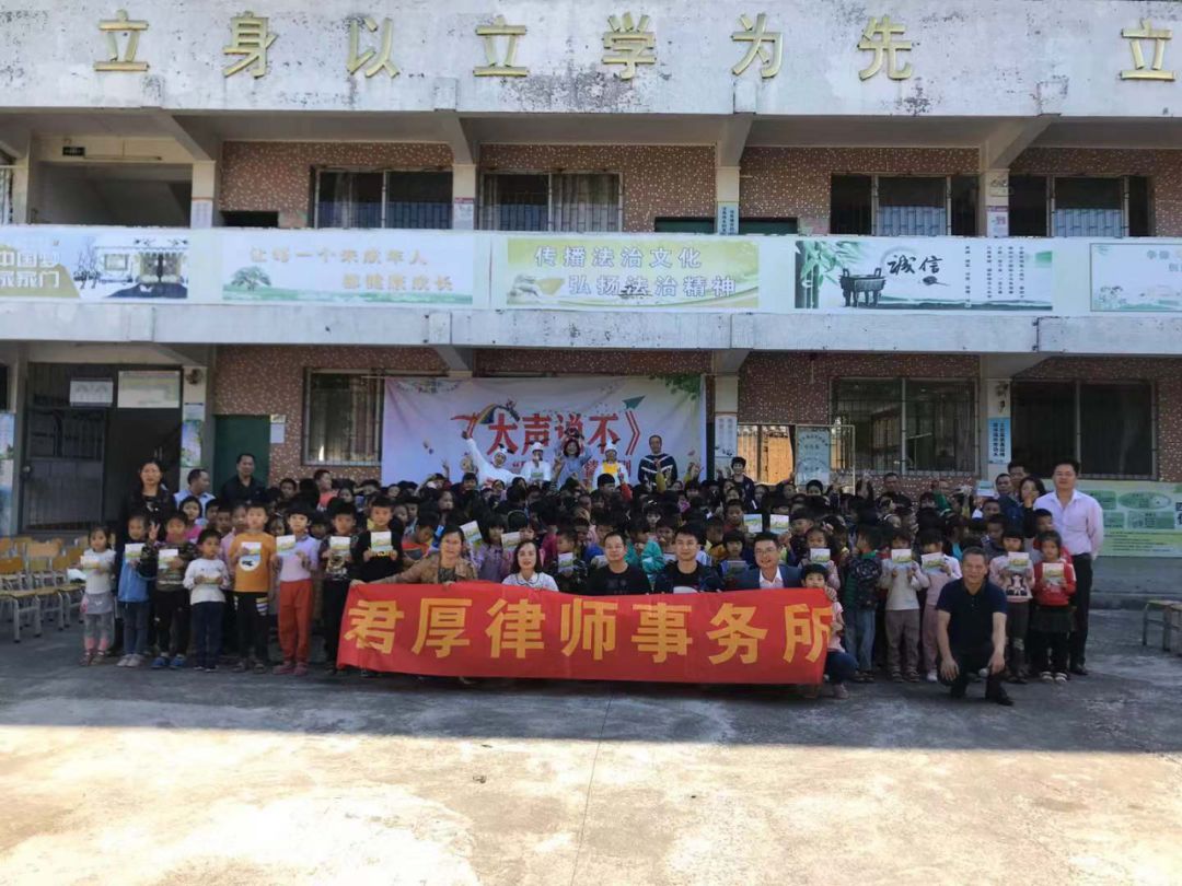 2019年11月8日、9日,君厚所党支部代表君厚律师事务所和民革广州市委直属第四总支部一同到清远市黄渠成小学、罗定市龙岗小学开展助学公益活动。